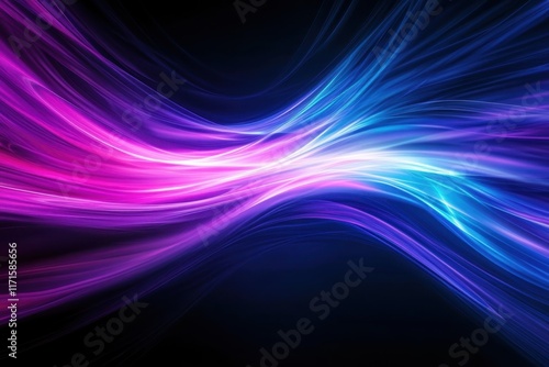 Abstract, swirling light trails, vibrant neon colors, purple and blue hues, dynamic motion, smooth curves, energy flow, glossy surface, futuristic, digital art, high contrast, luminous streaks, fluid