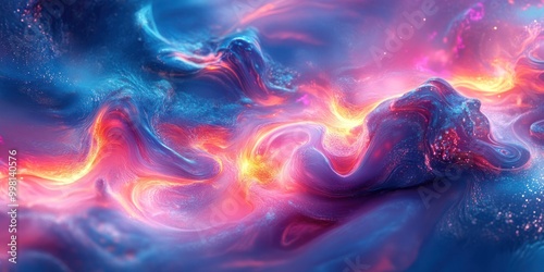 Abstract Swirling Liquid with Glowing Colors and Glitter