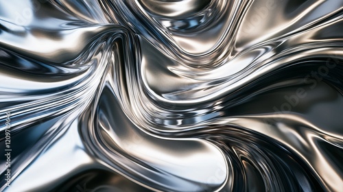 abstract swirling metallic ribbons, dynamic and vibrant, high detail, futuristic and sleek, flowing and artistic