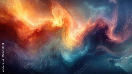 Abstract swirling nebula glows warmly with fiery orange and cool teal hues. AI Generated