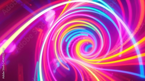 Abstract swirling neon light tunnel of vibrant colors