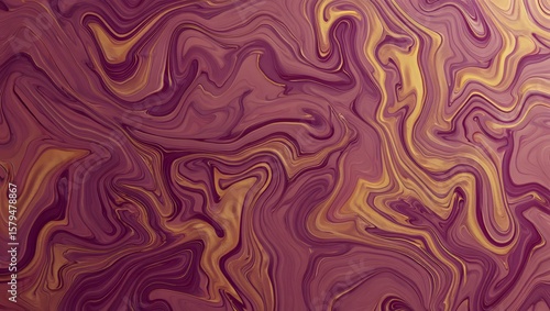 Abstract swirling pattern of deep magenta and shimmering gold liquid marble