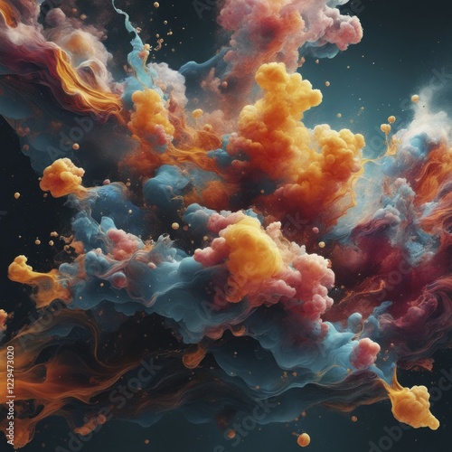 Abstract swirling patterns of orange, blue, and red floating in a dynamic composition, AI generated