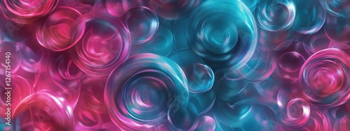 Abstract Swirling Pink and Teal Bubbles: A Vibrant Digital Art Composition