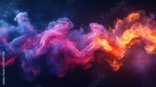 Abstract swirling smoke, fire, and particles in vibrant colors against a dark background.