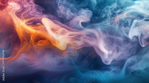 Abstract Swirling Smoke in Orange, Blue, and White Hues