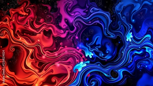 Abstract swirling vibrant red and blue liquid paint texture background design ideal for websites, posters, and digital art.