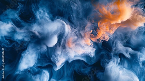 Abstract swirls of blue and orange paint in water