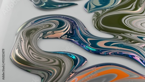 Abstract Swirls of Silver, Teal, Green, and Orange Paint