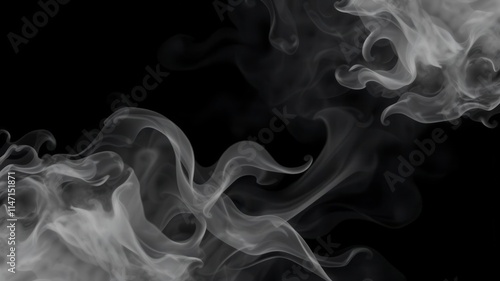 Abstract swirls of white smoke on a black background resembling a mystical ethereal mist, artistic, movement