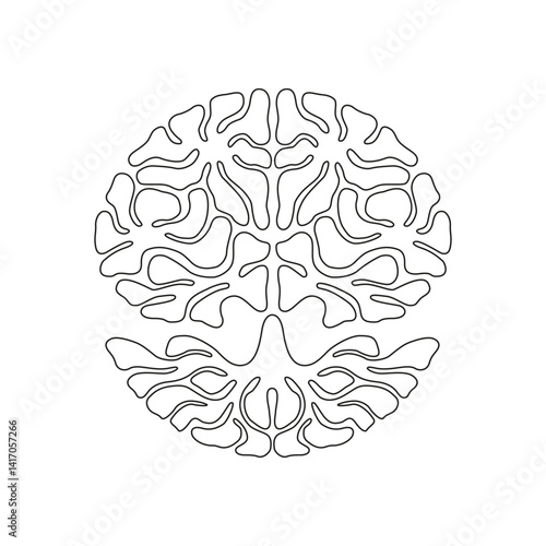 Abstract symmetrical illustration resembling a human brain or a tree with roots and crown. Black outline vector ornament for logos, posters and branding designs