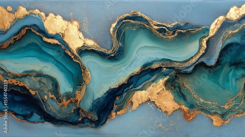 Abstract Teal And Blue Liquid Art With Gold Glitter