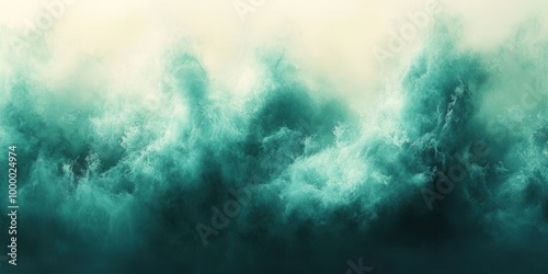 Abstract Teal and Cream Swirling Cloudscape with a Misty Atmosphere