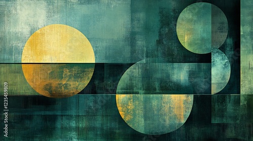 Abstract Teal Gold Circles Geometric Design. AI Generated