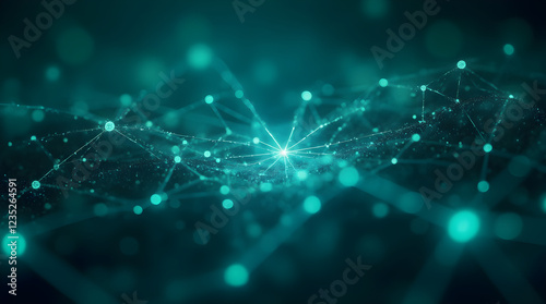 Abstract Teal Network Connection: Futuristic Technology Background, Digital Data Flow, Glowing Nodes and Lines