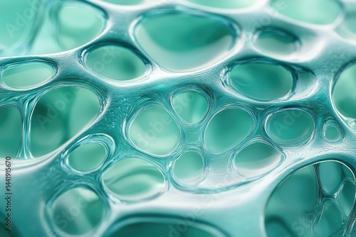 Abstract teal, organic, interconnected structure resembling a network or cellular system.