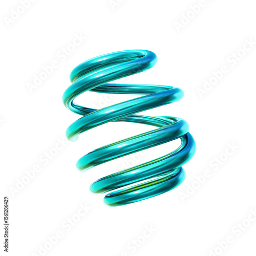 Abstract Teal Spiral 3D Render of a Glossy, Rotating Helix