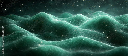 Abstract teal textured landscape with sparkling particles.
