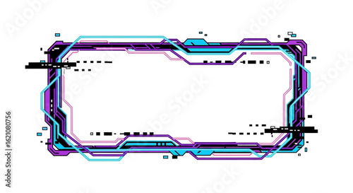 Abstract Tech Frame with Digital Glitch Effect Futuristic Interface Design