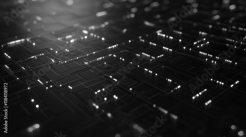 Abstract tech grid with glowing digital nodes and intersecting lines on a black background.