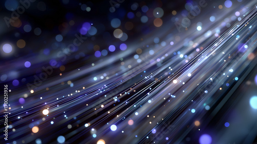 Abstract Technological Strands: Illuminated streams of energy dance across a dark, mesmerizing backdrop, showcasing interconnected digital pathways and radiant light.