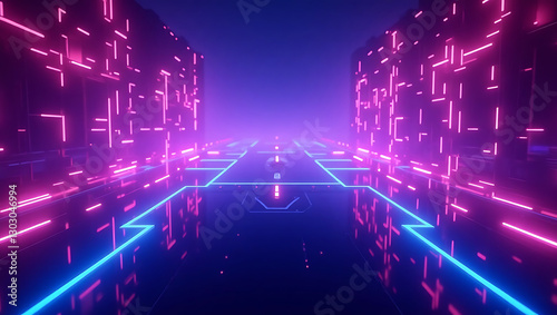 abstract technology background A futuristic, high-tech atmosphere is evoked by a mesmerizing purple and blue neon background