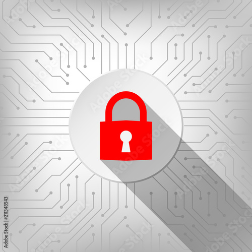 Abstract technology background. Cyber security concept. Closed padlock on digital circuit board vector illustration.