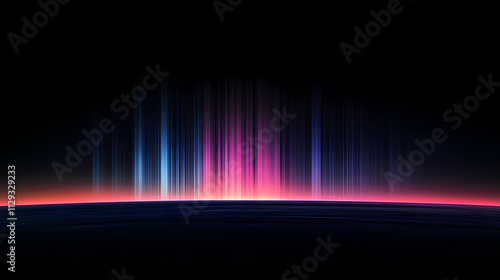 Abstract technology background. light rays raising from the horizon in dark space. Horizon. Illustration