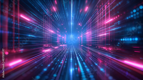 Abstract technology background Neon circuit board with bokeh effect High tech and dark background connection system with binary code and circuits. 3D rendering.