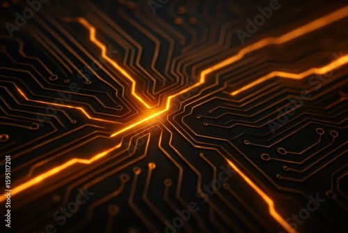 Abstract Technology Background with Circuit Board Design and Glowing Orange Lines