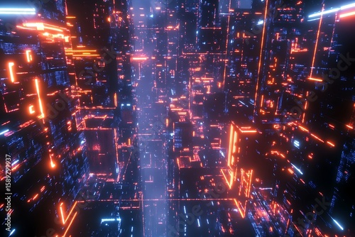 Abstract Technology Background with Glowing Lines and Data Streams for Futuristic Designs