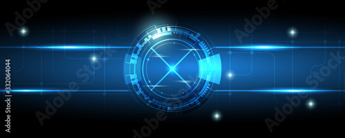 Abstract technology background with hi tech style circle, light beam and circuit pattern.