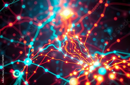 Abstract Technology Network in Neon Cyberpunk Style