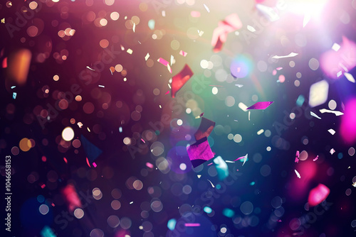 Abstract template explosion of confetti on colored background. Concept for holidays, advertising banners and invitations