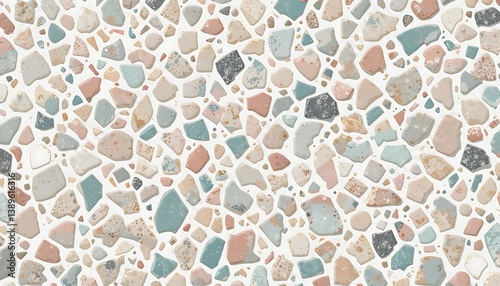 Abstract Terrazzo Pattern Background with Colorful Stone Fragments and White Base