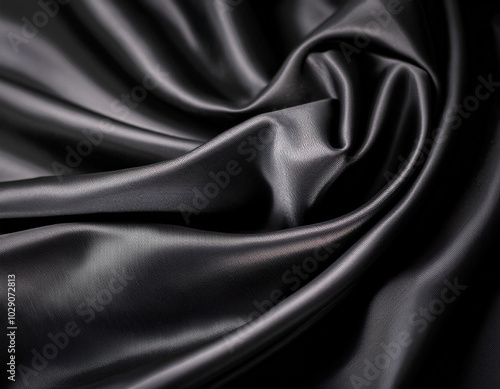Abstract texture of natural black or dark gray color fabric as concept background. Fabric texture of natural cotton or linen, silk or satin, wool or jersey textile material. Luxurious dark background.