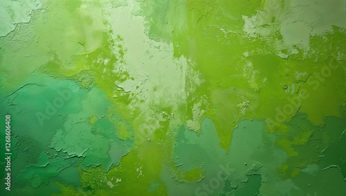 abstract, textured background featuring a vibrant green color palette. The surface displays a variety of shades ranging from light to dark green, creating a sense of depth and dimension.