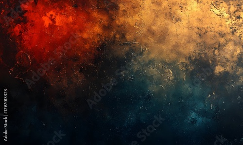 Abstract textured background with vibrant red gold and deep blue tones creating a cosmic atmosphere