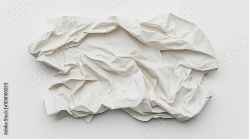 Abstract textured crumpled white fabric on white background.