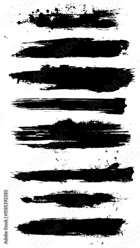 Abstract thin black textured strokes big set isolated on a white stock illustration