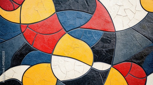 Abstract tile pattern with bold, contrasting colors and dynamic shapes, evoking a sense of movement and creativity. High-resolution close-up.