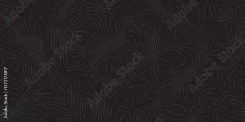 "Abstract topographic map dark background with contour lines. Minimalistic black pattern ideal for technology, geography, data visualization, and modern design projects. Seamless and high-resolution"
