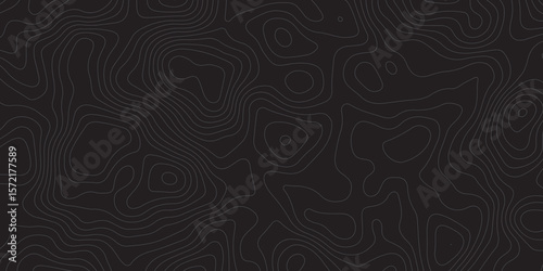 "Abstract topographic map dark background with contour lines. Minimalistic black pattern ideal for technology, geography, data visualization, and modern design projects. Seamless and high-resolution"