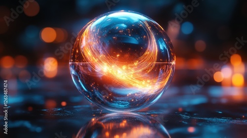Abstract transparent glass celestial sphere with infinitely looping lines on a hyper-detailed background, 3D rendering illustration of futuristic abstract shape