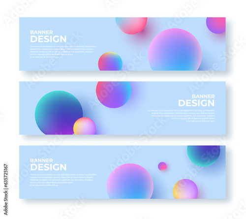 Abstract trendy header design template collection. Modern horizontal banner set with 3d spheres or balls
