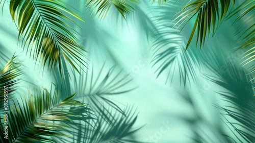 Abstract tropic mint-colored background with soft palm tree shadows like a mockup or product presentation template. green patel