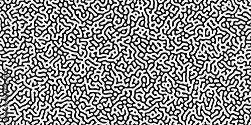 Abstract truing organic wallpaper Turing reaction diffusion monochrome seamless pattern with chaotic motion. Generative algorithm psychedelic background. Reaction-diffusion or truing pattern formation