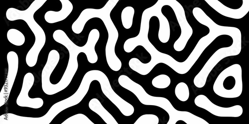 Abstract Turing organic wallpaper with background. Turing reaction diffusion monochrome seamless pattern with chaotic motion. Natural seamless line pattern. Linear design with biological shapes.