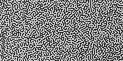 Abstract Turing organic wallpaper with background. Turing reaction diffusion monochrome seamless pattern with chaotic motion. Organic seamless patterns with rounded lines Diffusion reaction background