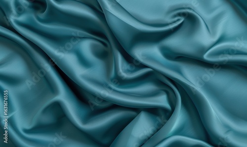 Abstract turquoise textile background with soft draped folds and smooth texture